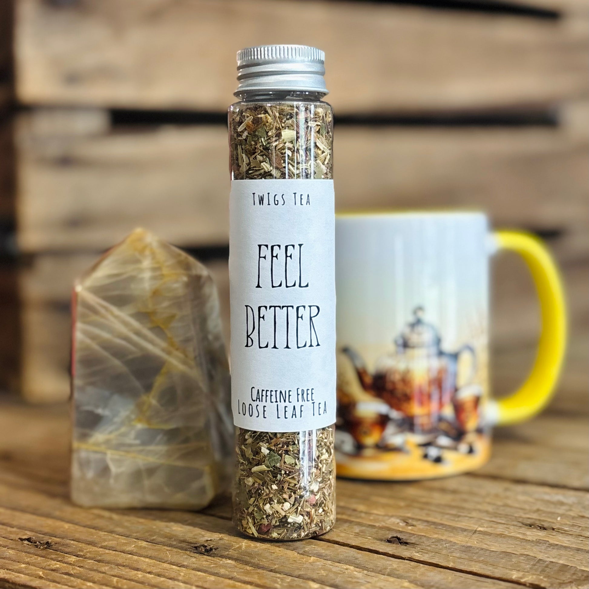 Cast those blues away with our Feel Better blend. This blend, based on traditional Ayurvedic & Western herbs and botanicals, helps to rebuild wellness from within, releasing stagnation and enlivening the senses. Brew this blend for a citrusy, spicy cup.