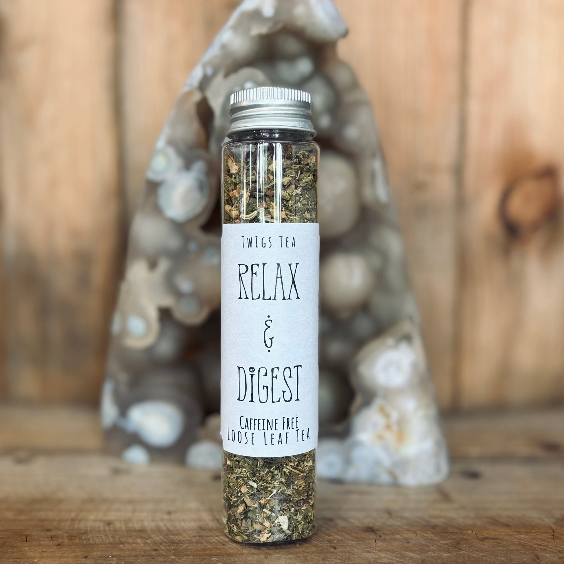 Unwind after a meal with Relax & Digest, a delicious herbal tea that stimulates digestion & untangles the mind.